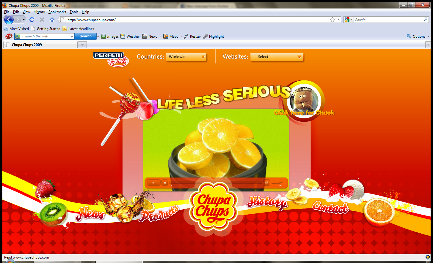 Upon entry into the website my taste-buds were jumping with joy, as ChupaChup hit the sweet spot, pretty amazing for a website to effect physical feelings in the case of flash and animation. The effectiveness of the clarity of information coupled with the imaginative structure allows users to reminisce the past time of when they last had a ChupaChup. By stopping my rambling on the delicious look to the website, the feel and interface is just as or even more effectively executed. With great colours and imagery true to the product, the integrity of the information does not foresee the users eye, depicting a great interactivity of flash and animated brilliance.